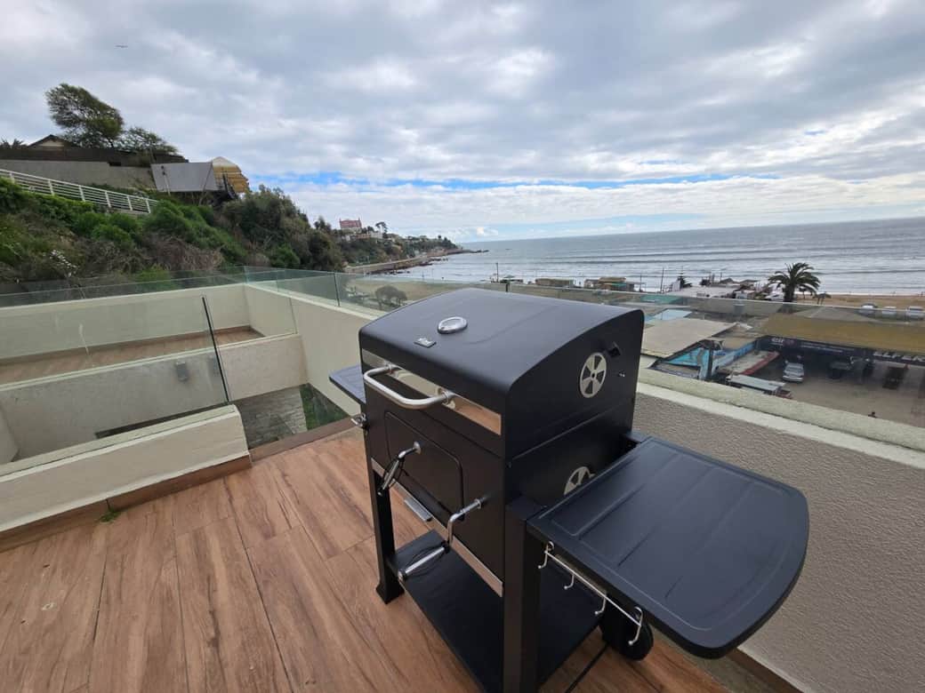 Departamento dúplex ideal para hasta 5 personas. Cuenta con una cama king, dos camas de plaza y media y una cama nido. Dispone de dos terrazas, incluida una en el último piso con parrilla a carbón y vista espectacular a la playa La Boca en Concón. Totalmente equipado con cocina, lavadora, wifi y Smart TV. Perfecto para disfrutar del mar, descansar y compartir con familia o amigos en un entorno único y cómodo. Administrado por RialPro para una estadía inolvidable.